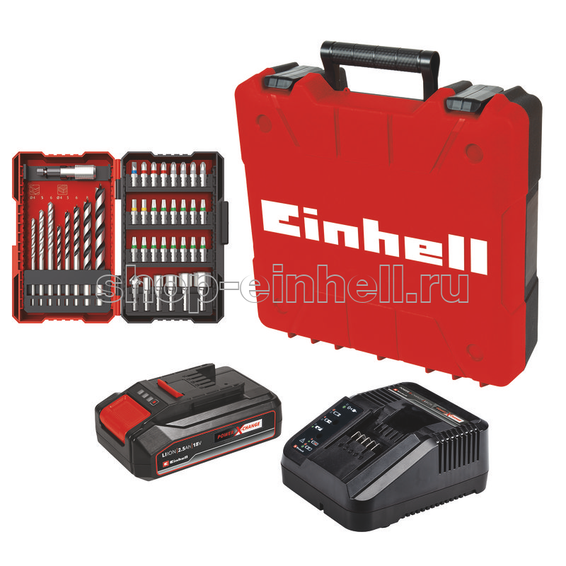 - Поставляется с 1 батареей, зарядным устройством, набором оснастки и кейсом