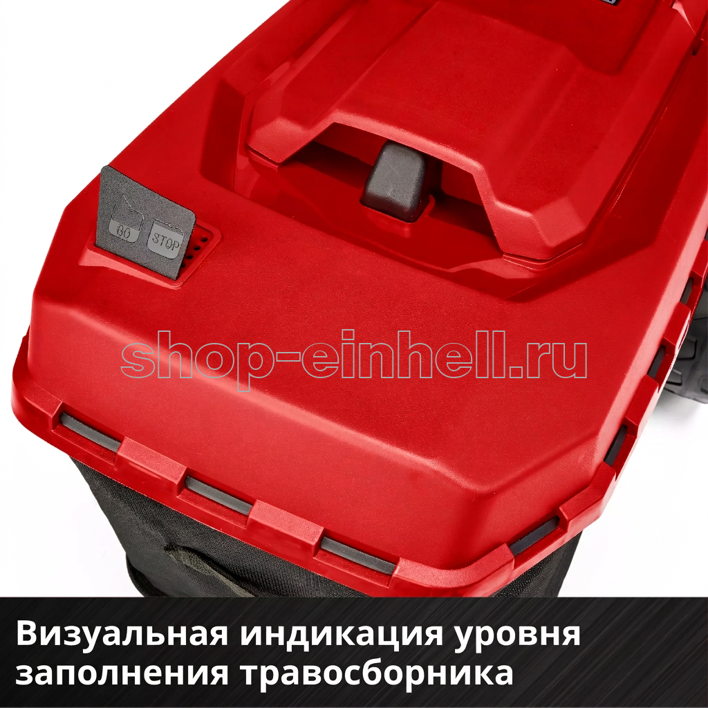 - Контейнер для сбора травы объемом 50 л с индикатором уровня заполнения
