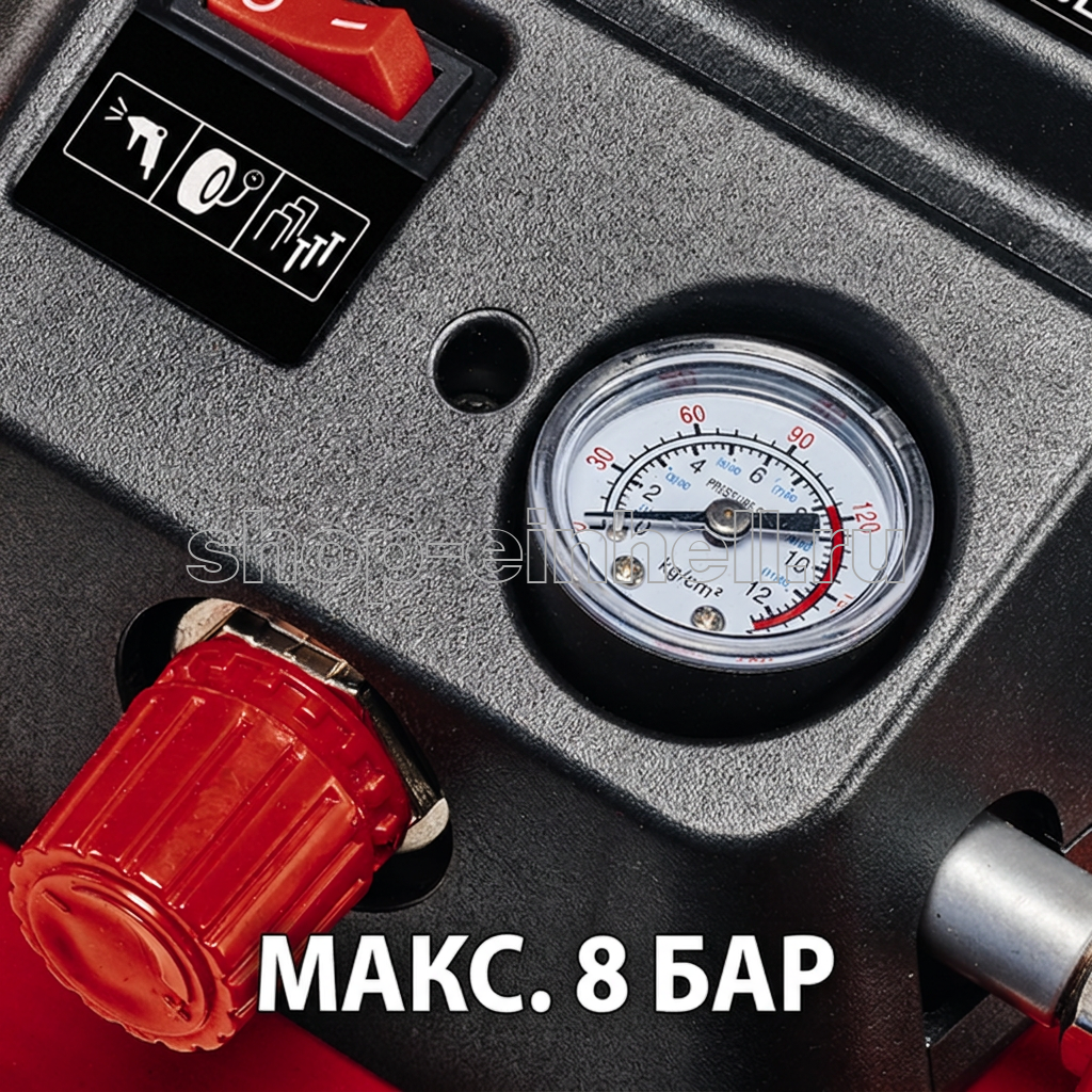 Аккумуляторный компрессор Einhell TE-AC 36/6/8 Li OF Set можно использовать для различных целей. Компрессор оснащен резервуаром на 6 л и работает от аккумуляторных батарей PXC, которые можно использовать со всеми изделиями этой серии. Электродвигатель не содержит масла и не требует технического обслуживания. Регулятор давления обеспечивает настройку нагнетания давления до 8 бар. В комплект входит манометр и быстроразъемная муфта для регулируемого рабочего давления. Эргономичность благодаря ручке, конструкции и вибропоглощающим ножкам, простое обслуживание обеспечивается сливным краном. Защита пользователя обеспечивается предохранительным клапаном. Компрессор поставляется в комплекте с продувочным пистолетом, шинным манометром и набором переходников в количестве 8 шт., а также матерчатым шлангом длиной 2,5 м. На резервуар предоставляется 10-летняя гарантия от компании Einhell. Компрессор поставляется без аккумулятора и зарядного устройства.