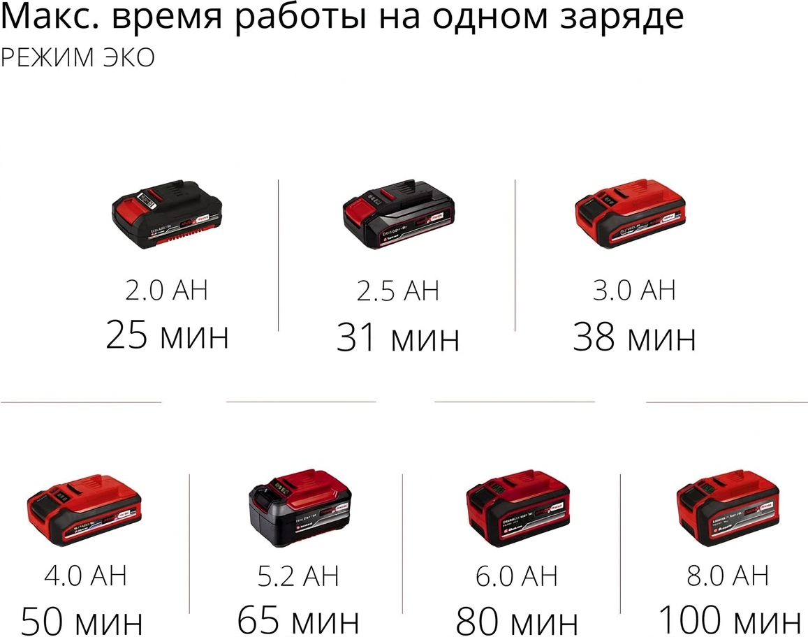 - Аккумулятор 2.5 Ач и зарядное устройство 3А в комплекте