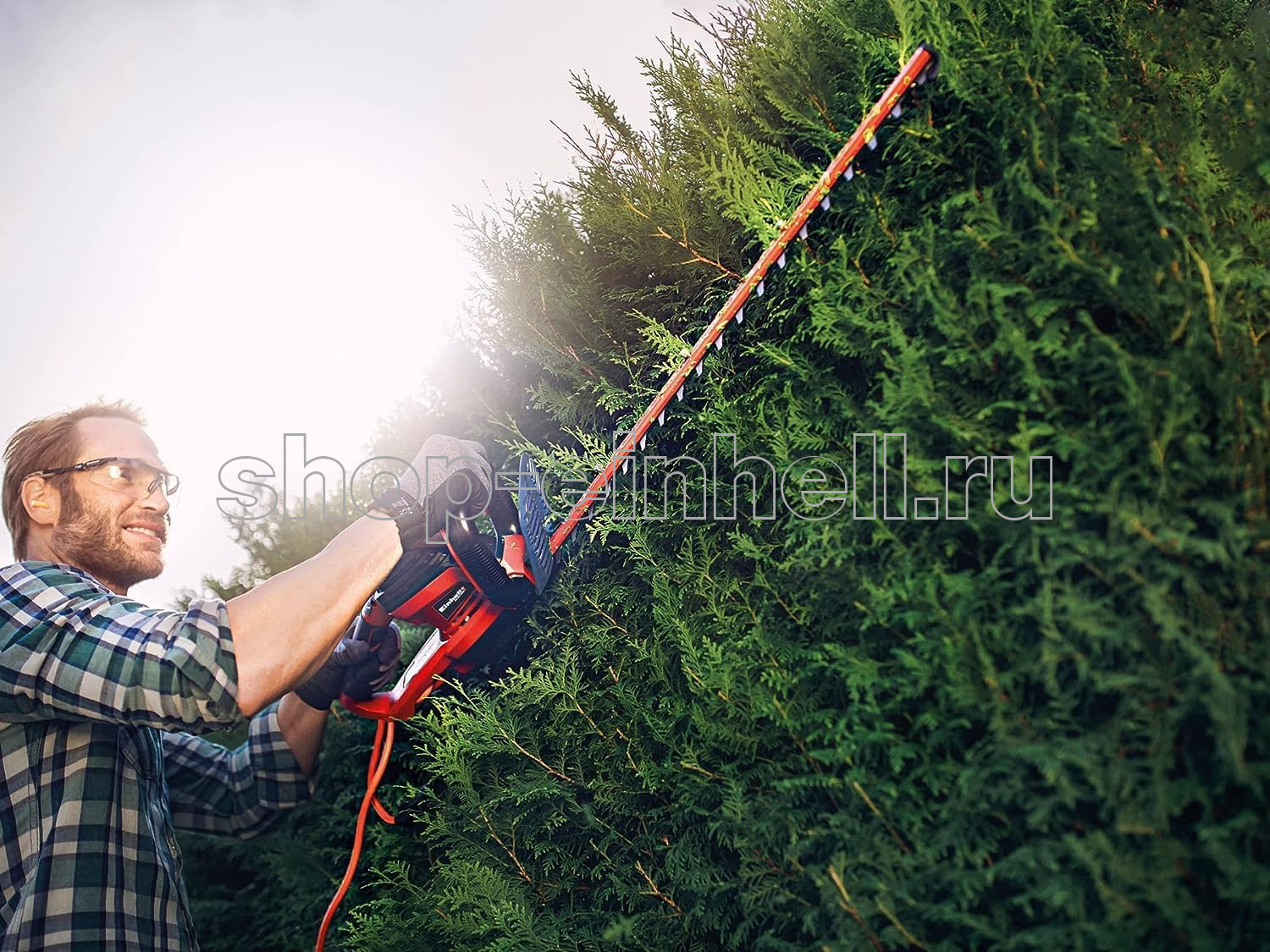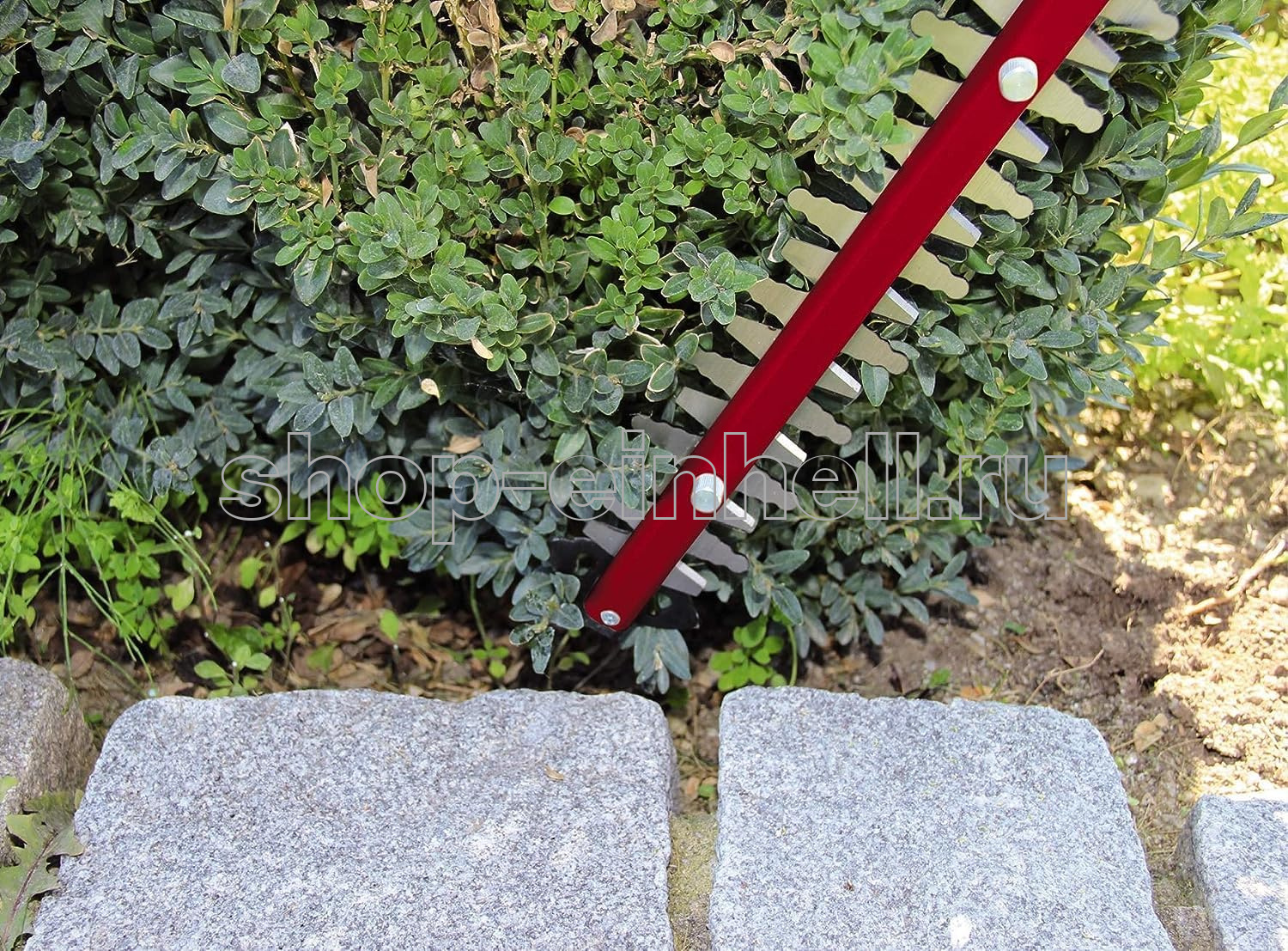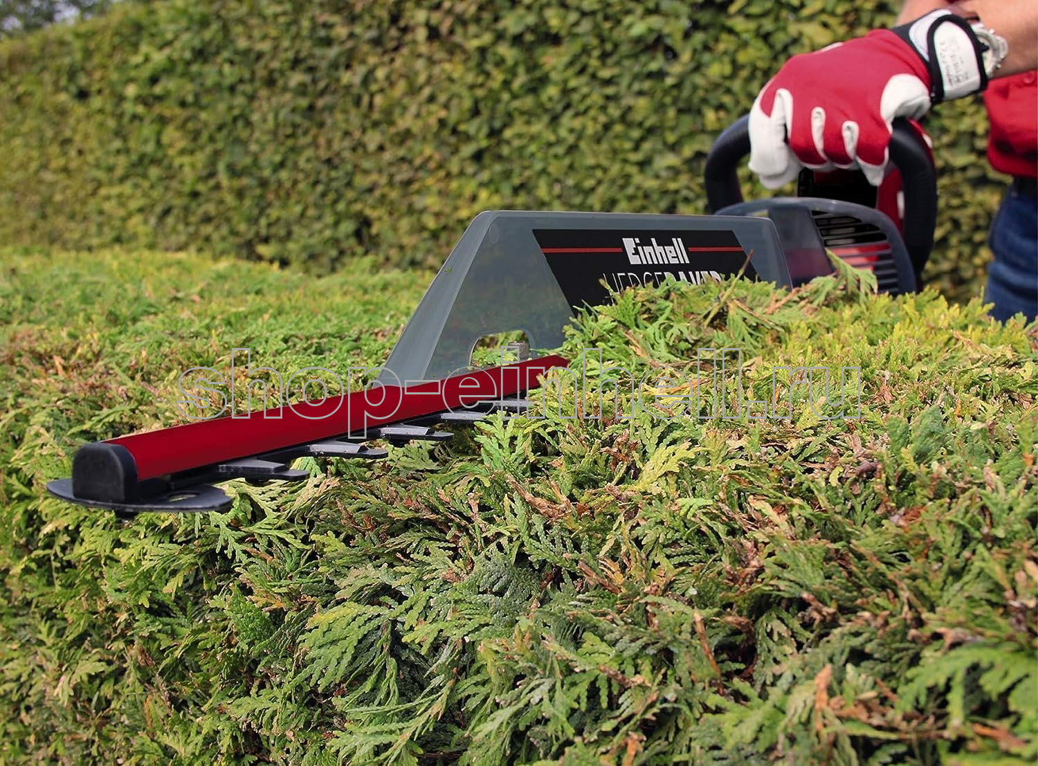 Кусторез электрический Einhell GC-EH 6055/1 с легкостью осуществляет работу по подстриганию кустов, живой изгороди и кустарника. Кусторез с мощностью двигателя 600 Вт и длиной лезвия 610 мм является мощным и надежным помощником для садоводов. Двухсторонние ножи долгое время остаются острыми благодаря лазерной заточке и алмазной шлифовке. Прочный металлический редуктор эффективно передает крутящий момент двигателя. Благодаря мягким накладкам Softgrip инструмент надежно фиксируется в руках. Для дополнительной безопасности предусмотрены: двухточечный выключатель, защитный щиток, алюминиевая накладка на лезвия и приспособление для разгрузки кабеля от натяжения. Кусторез имеет насадку для смахивания обрезков листвы и веток.