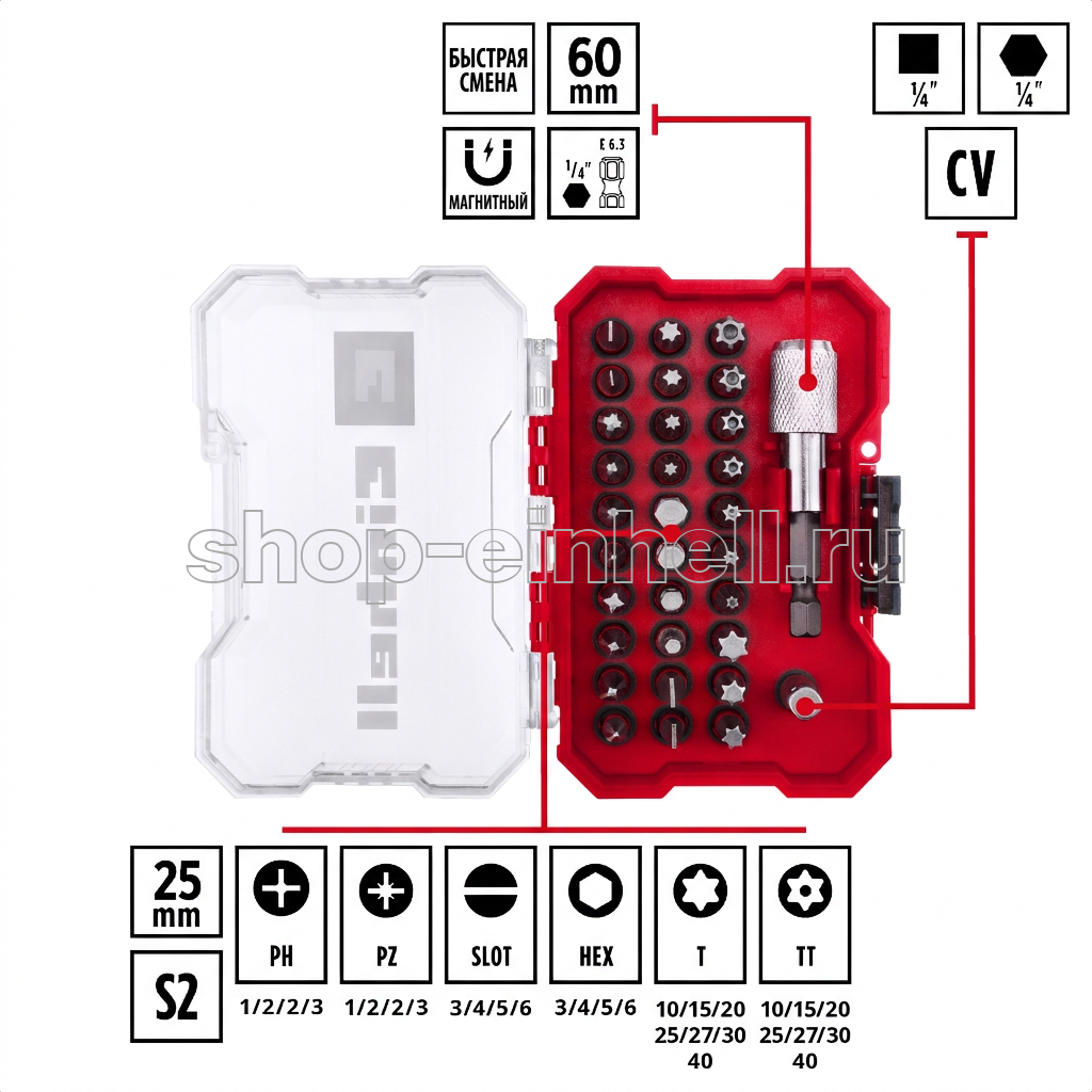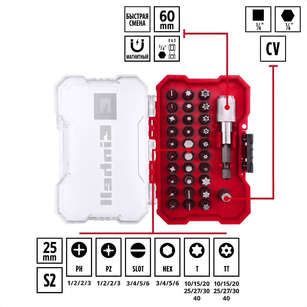 Набор бит Einhell 32 предмета,битодержатель,XS-Case 118693