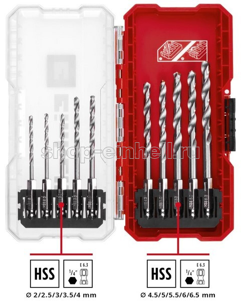 Набор сверл Einhell 10 штук,2-6.5мм,по металлу,HSS 135 гр,с 6-гранным хвостовиком,S-Case 108723