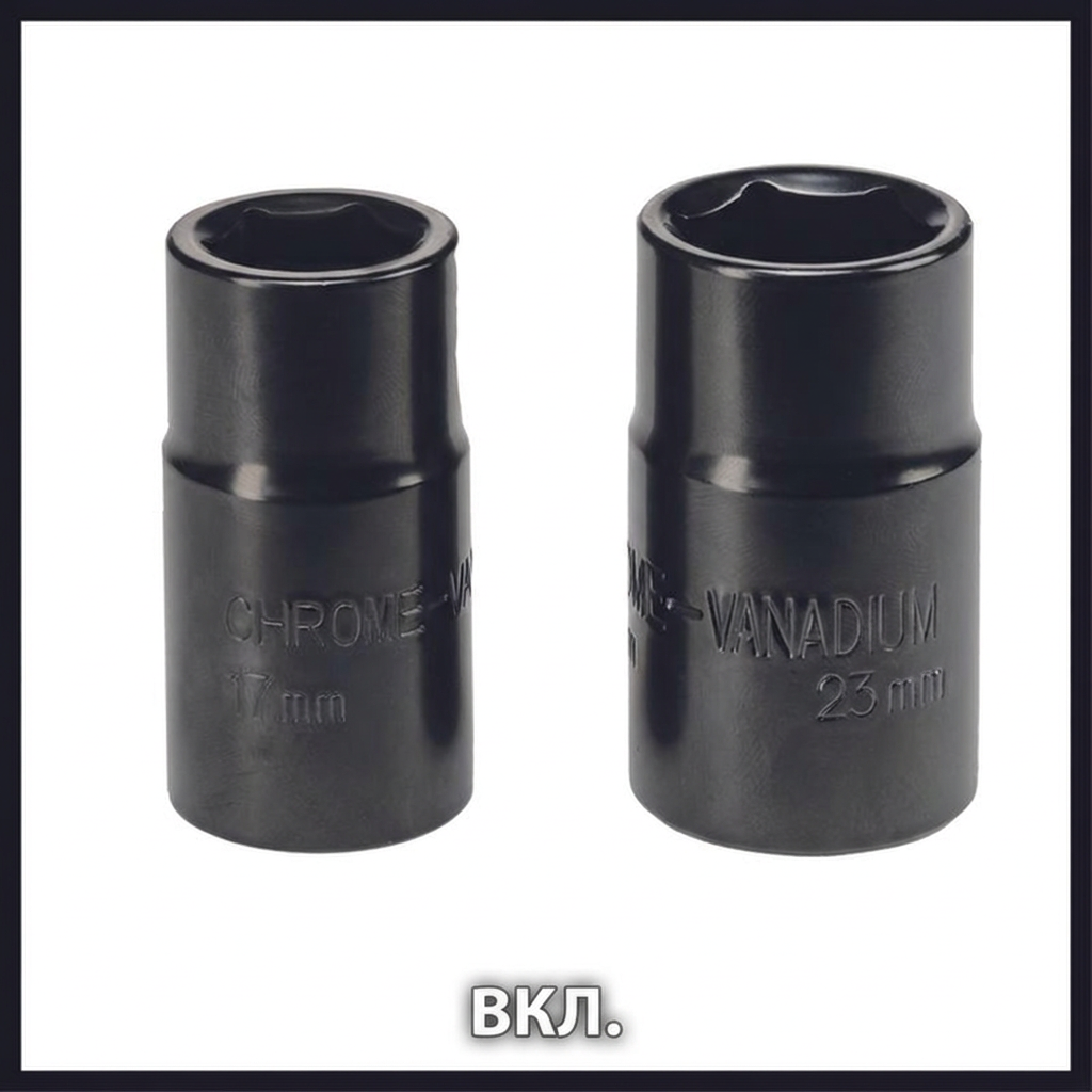 - Две торцевые головки, 17/19 мм и 21/23 мм