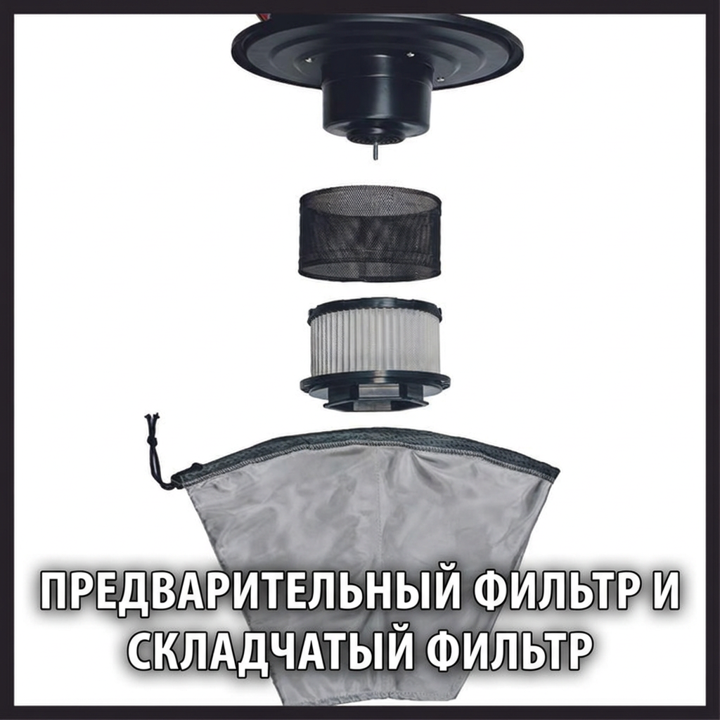 - Полная фильтрация золы и пыли благодаря гофрированному фильтру