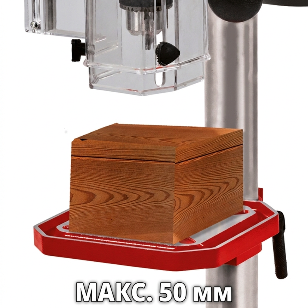 Сверлильный станок Einhell TC-BD 500 работает в 9 скоростных режимах, что существенно расширяет его возможности и позволяет быстро и аккуратно просверливать заготовки различной твердости на максимально подходящей скорости. Оператор имеет возможность выставлять число оборотов в диапазоне от 300 до 2410 об/мин. Модель активно используется в небольших мастерских. Жесткая станина агрегата устойчива к механическим повреждениям. Станок отличается высокой прочностью конструкции и благодаря качественной сборке не разбалтывается в процессе сверления.
