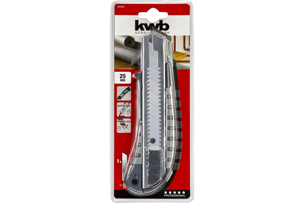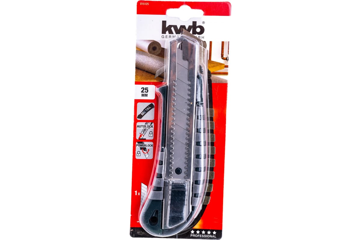 Выдвижной нож kwb 25мм 15125 имеет прочный цинковый литой корпус с резиновым покрытием, обладающим противоскользящей поверхностью захвата. Направляющая лезвия выполнена из прочной нержавеющей стали.