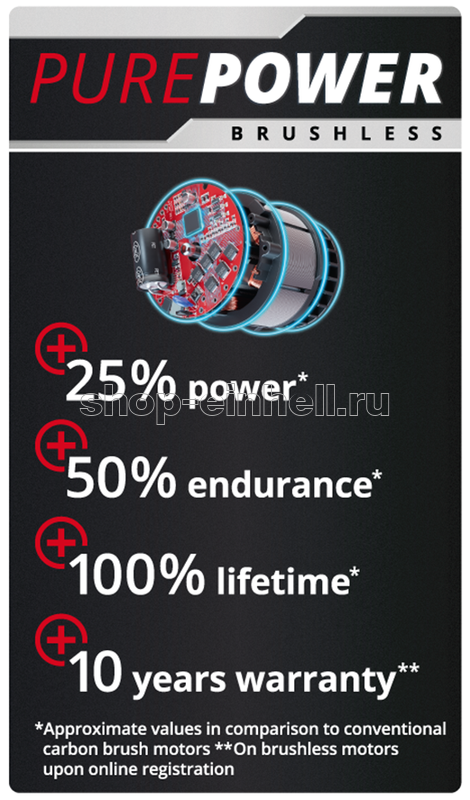 - PurePOWER Brushless - 10 лет гарантии на двигатель