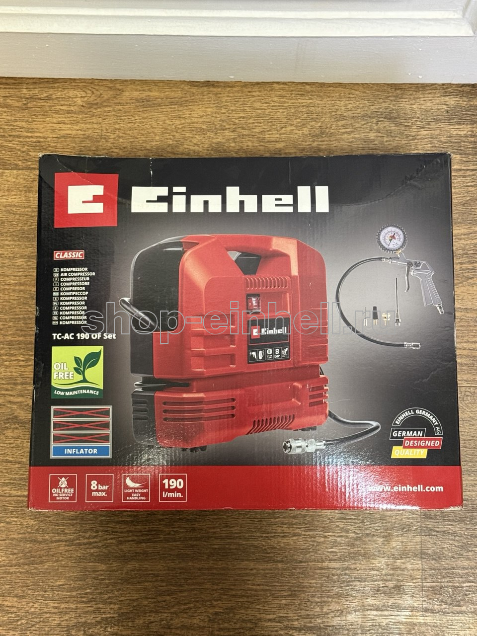 При помощи портативного компрессора Einhell TC-AC 190 OF Set можно выполнять широкий диапазон различных задач, требующих перемещения компрессора из одного места в другое. Этот удобный портативный компрессор нагнетает максимальное давление 8 бар, приводится в действие безмасляным двигателем, который не требует обслуживания, и сам требует минимального технического обслуживания. Компактная и облегченная конструкция значительно упрощает перемещение. Для хранения портативного компрессора требуется минимум места. В корпусе предусмотрено отделение для хранения шланга сжатого воздуха и продувочного пистолета, а также дополнительный отсек для хранения переходников. Шнур питания сматывается прямо в корпус. Изделие поставляется в комплекте со шлангом для сжатого воздуха длиной 3 м, оснащенным быстроразъемной муфтой, продувочным пистолетом с шинным манометром и набором переходников в количестве 3 шт.
